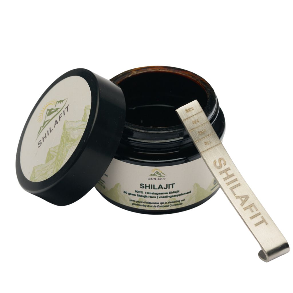 Shilajit is een bijzondere, natuurlijke stof die voorkomt in de Himalaya en andere berggebieden. Deze donkere, harsachtige substantie ontstaat door de eeuwenlange afbraak van plantenmateriaal tussen de rotslagen. Het resultaat? Een rijke bron van natuurlijke mineralen, fulvinezuur, humuszuur en antioxidanten: meer dan 84 mineralen in totaal. Dankzij deze unieke samenstelling wordt shilajit al eeuwenlang gewaardeerd in de Ayurvedische en andere traditionele geneeswijzen. Het wordt o.a. voorgeschreven om het libido op te krikken en de vetverbranding aan te jagen, wat helpt als je wilt afvallen. Ook zou shilajit helpen bij de concentratie en het geheugen ondersteunen. Een krachtig natuurproduct dus, dat perfect past binnen een bewuste leefstijl. Onze shilajit van Shilafit is uitvoerig getest en van een hoge zuiverheid. Verkrijgbaar in een potje van 30, 60 of 120 gram, inclusief doseerlepeltje.